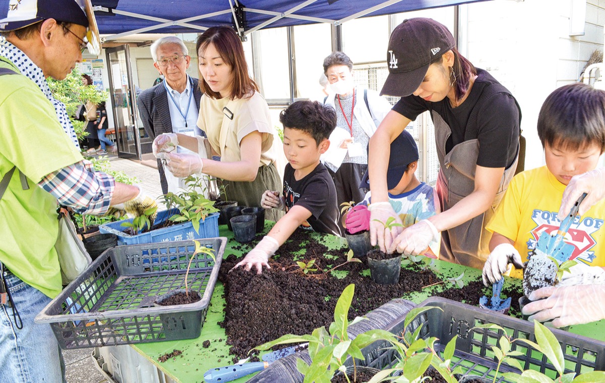 花水公民館で5月18日、「どんぐりの樹を育てよう/ポット苗をつくってSDGsに貢献しよう」と題した体験会が開催された。花水地区に住む小学生や保護者ら約20人が参加し、約200個のポット苗を作った。