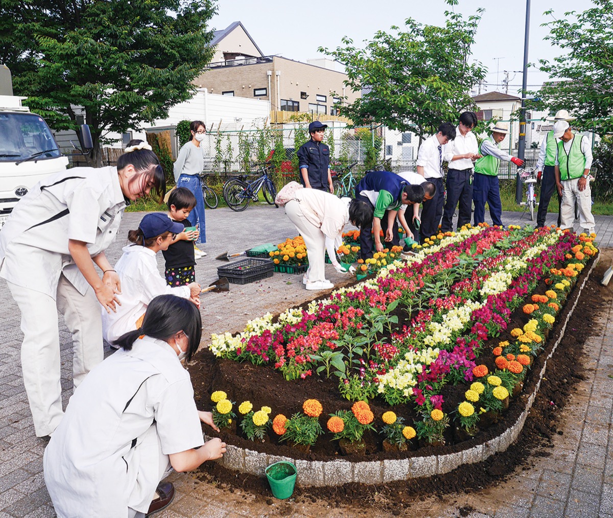 同班の班長・松井優梨奈さん(3年)は、「人見知りだったけれど、花壇整備を始めてから地域の人と話すようになった。小さい子どもも花壇に来てくれてうれしい」と話し、同会の今井照男会長(70)は、「生徒の手際がよくて驚いた。ラジオ体操をしている人たちが毎日花壇に水をまいてくれるので助かっている」とほほ笑んだ。