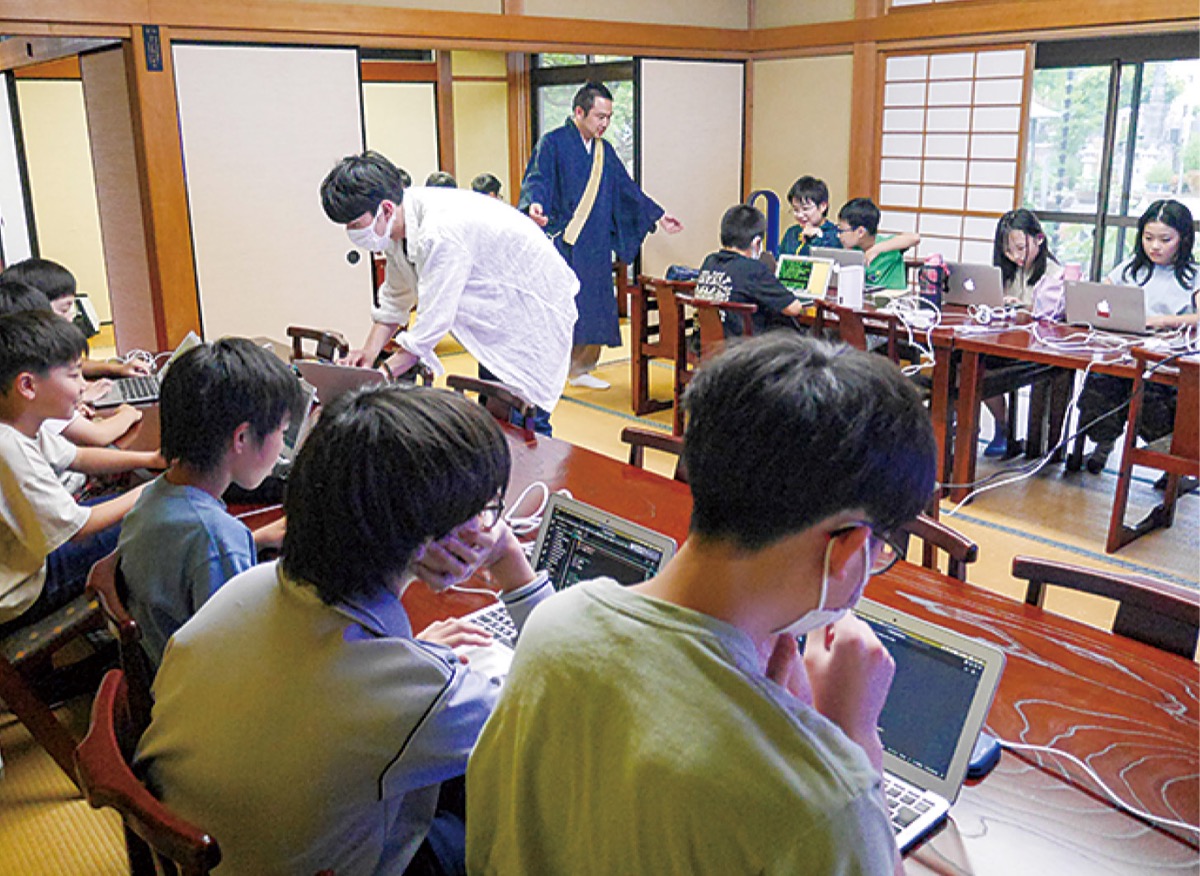 SDGsを意識した取り組みを行っている要法寺は、市内の子どもを対象にしたプログラミング教室を開催している。講師は、楽しく学ぶ教育を啓発する「KINAKO」の高橋晴久代表。