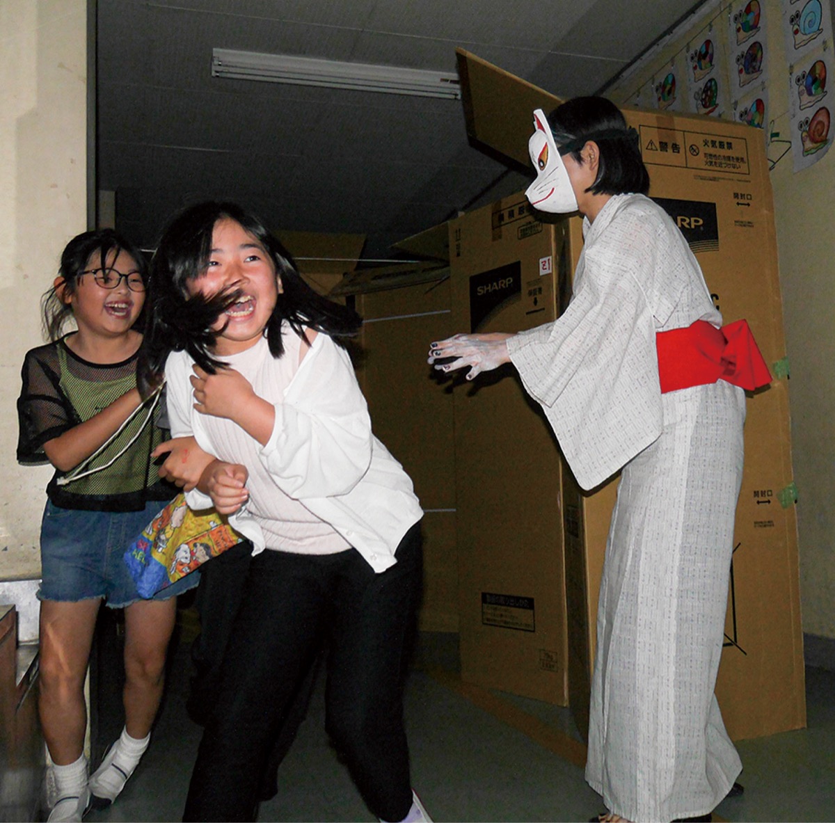 約30年前から河内子ども会が旭北公民館で行っていたお化け屋敷が前身となる同イベント。当時から携わっている和泉怜さん(42)は「他校から見学に来た先生からノウハウを聞かれる。”驚かすのはほどほどに”とアドバイスしている」と笑顔で話した。