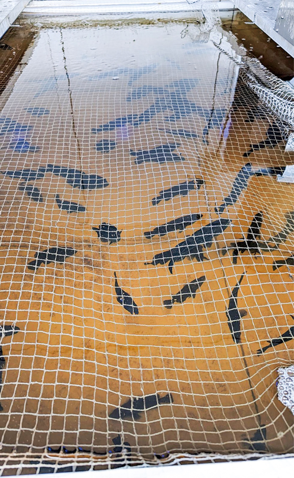 販売している装置本体のサイズは10平方メートルほどで、駐車場1台分のスペースがあれば設置できる。事業参入しやすい低価格に加え、スマホで遠隔操作が可能なので、給餌や水質管理、清掃の手間が削減できるのも特徴だ。「灯油を入れ忘れたことがあったが、アラームのお陰で助かった。どこでも誰でも安定した水産養殖ができるのが強み」と竹之下さん。