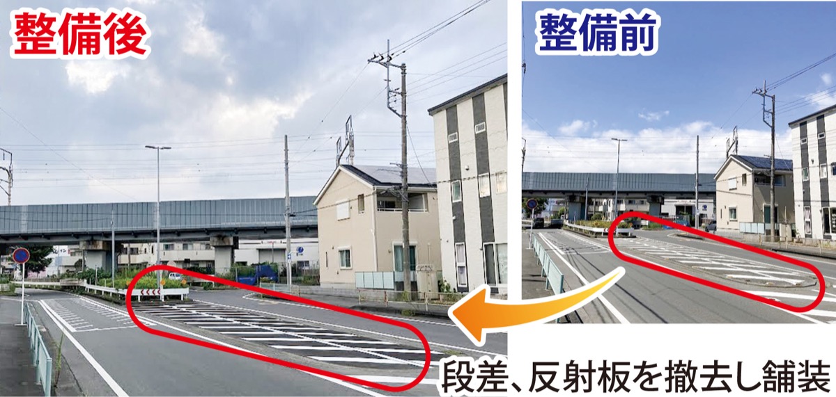 また、二宮町では二宮消防署前の県道71号線にかつて中央分離帯があった箇所の残置物と反射板が支障となり、迅速な緊急出動ができないとの相談がありました。高価な精密機器を搭載する消防車や救急車への衝撃を最小限にするため、最徐行で出動せざるを得ない状況でした。さっそく平塚土木事務所の道路維持課に連絡すると、すぐに現状を確認して下さり、消防署とも協議の上、7月中旬には中央分離帯部分を平らにする工事が実施されました。確認に行くと、段差と反射板は撤去されアスファルトで綺麗に舗装されていました。消防車・救急車の緊急出動は1秒も無駄にできません、適切な道路改良は地味ですが行政の重要な仕事です。