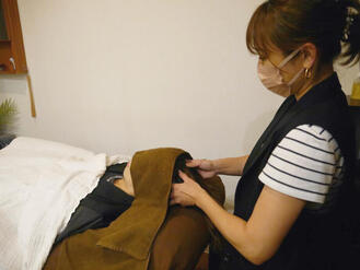施術を始める前に、まずは丁寧なカウンセリングが行われる。スタッフの真子(まなこ)愛さんは「お客様によって悩みが違う。その方にあった施術をすることで最大限の効果が出る」とこだわりを話す。