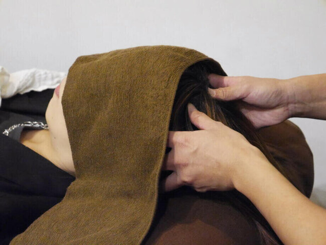 ここまで様々なこだわりを持っているヘアサロン「サプリ」を紹介してきたが、通常のドライヘッドスパと大きく異なるのは、やはりCBDオイルをいち早く取り入れている点だ。真子さんは「CDBオイルを首や頭皮に塗った後、浸透を促すためにホットタオルで温めています」といい、さらなる効果を出す工夫をしている。