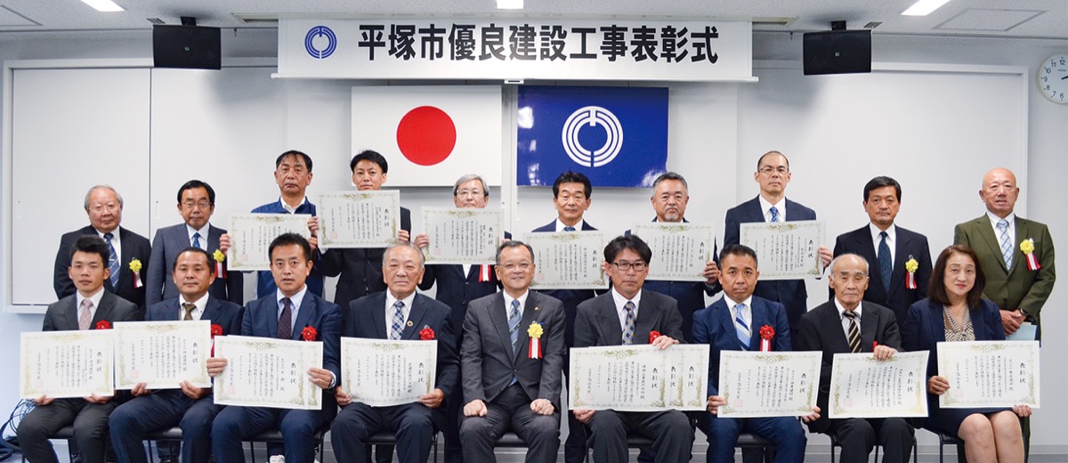 令和5年度平塚市優良建設工事の表彰式が10月4日に市消防署本署で行われ、受賞した12社が出席した。