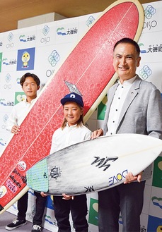 池田町長は「世界で大活躍してほしい。大磯サーフィン協会の尽力にも感謝」と話した。