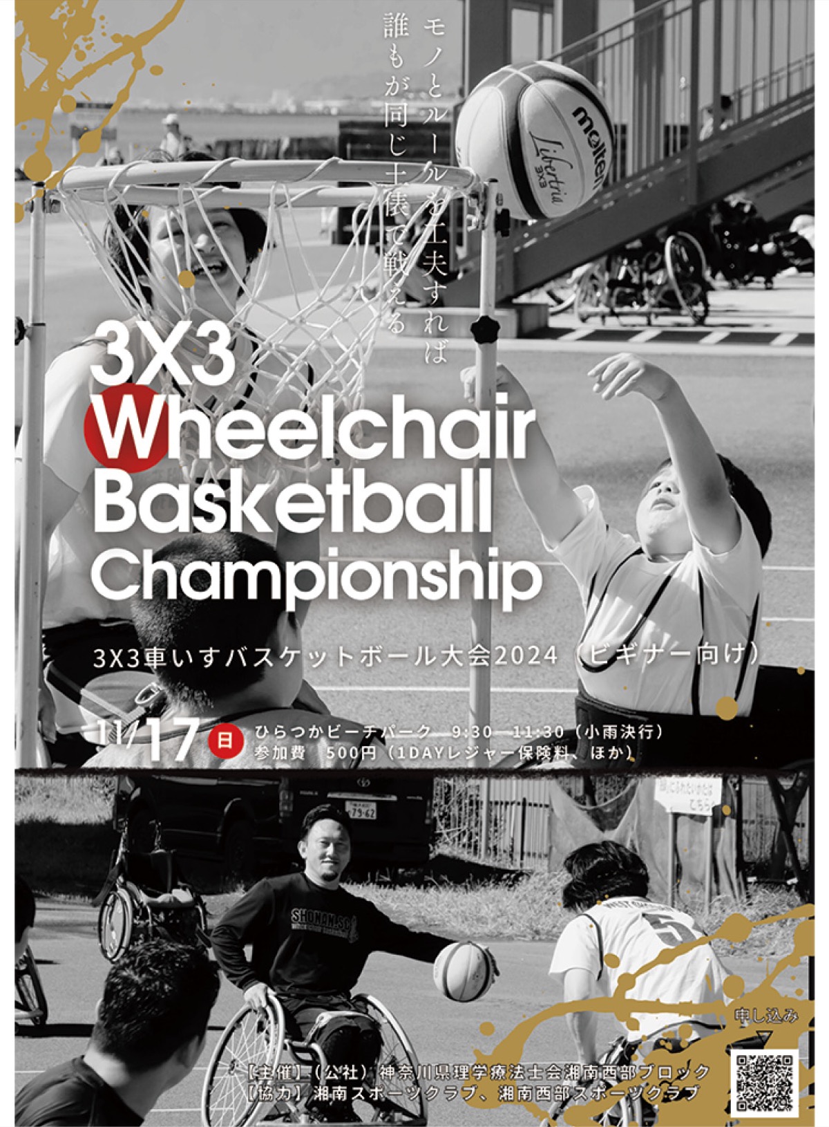 初心者向けの「3×3車いすバスケットボール大会2024」が11月17日(日)、湘南ベルマーレひらつかビーチパークで開かれる。(公社)県理学療法士会湘南西部ブロック主催。