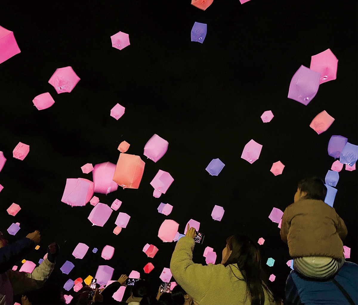 午後6時頃、370個のスカイランタン(R)が夜空に上がると、来場者からは幻想的な光景に歓声が上がった。