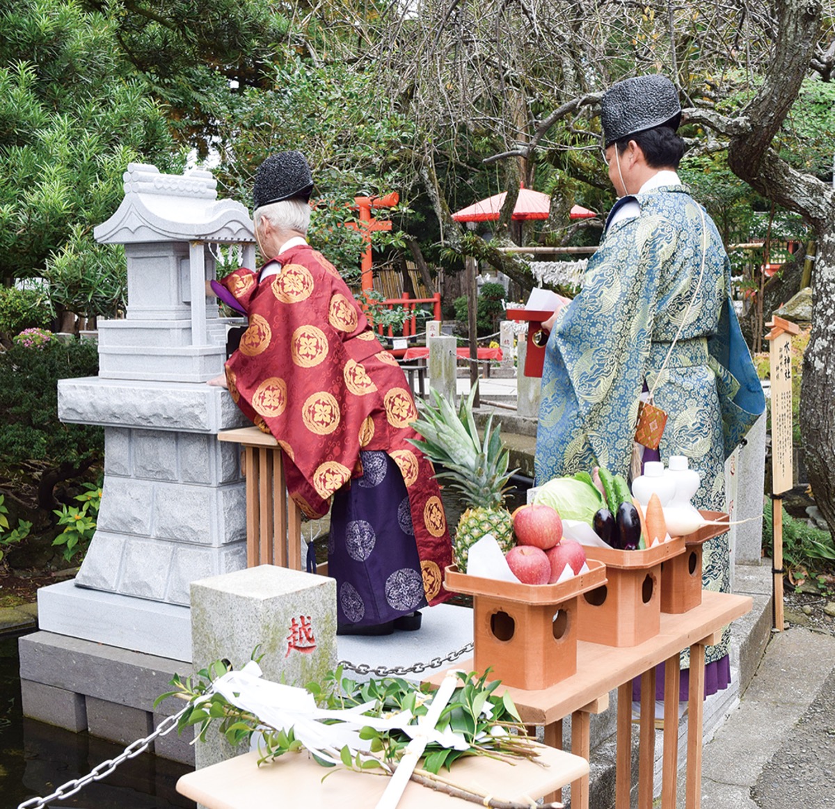 相模国総社として知られる六所神社(大磯町国府本郷935)で11月23日、境内に鎮座している水神大神社(すいじんおおかみやしろ)の遷座祭を実施した。氏子総代ら関係者が参加した。