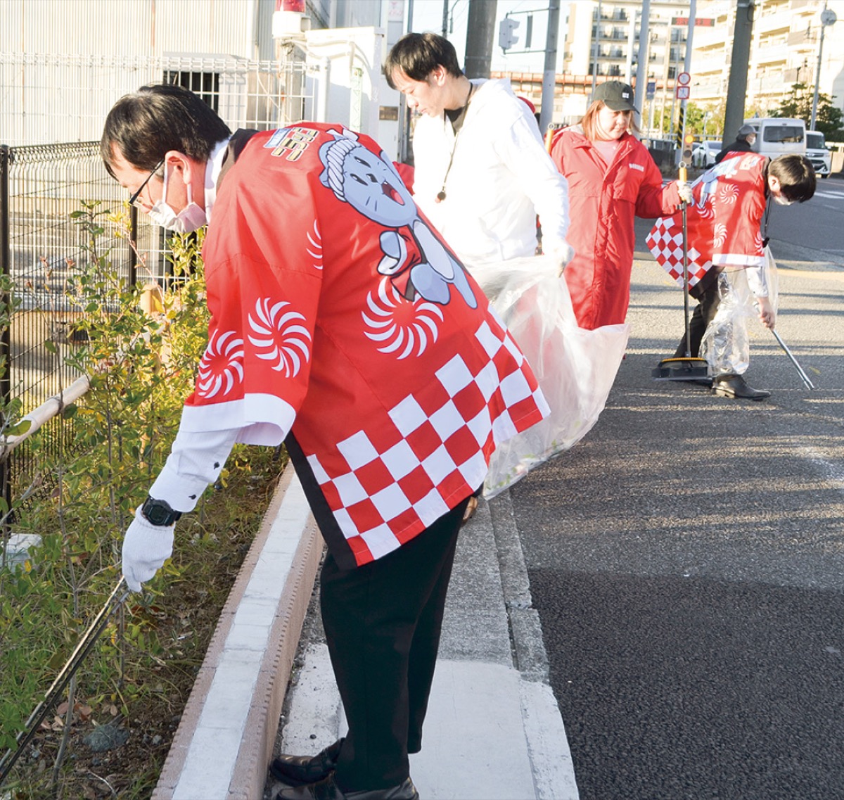 平塚遊技場組合に加盟するニラク平塚黒部丘店とマルハン平塚店、茅ヶ崎店が、11月30日に平塚駅周辺と黒部丘の清掃活動を行った=写真。