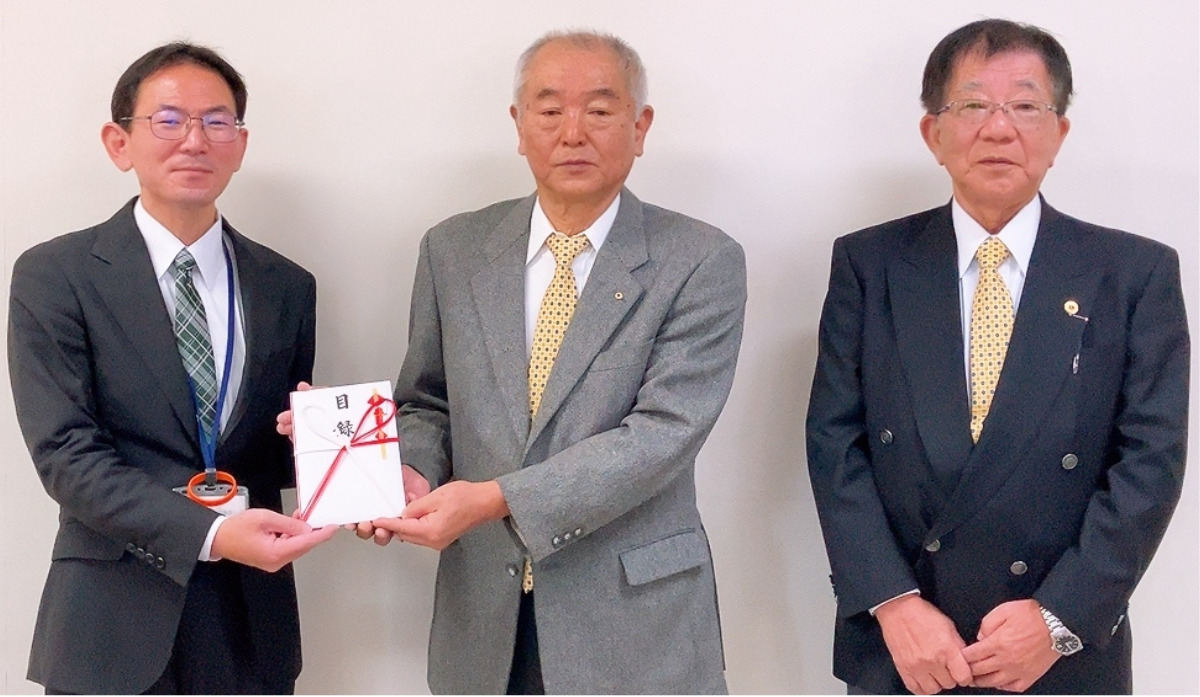二宮ライオンズクラブ(長田正司会長)が12月20日、赤い羽根共同募金(年末たすけあい募金)に寄付金を贈呈した。