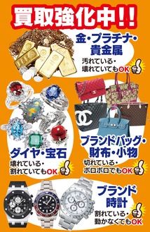 同店は、最新の相場で金・プラチナなどの貴金属、エルメスやルイ・ヴィトンなどのブランドバッグなどを査定。大野恭兵店長は「どんな状態の物でもお気軽にお持ちください」と話した。