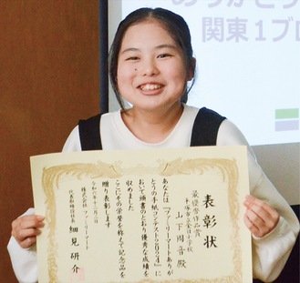 「ありがとうの手紙コンテスト2024((株)ファミリーマート主催)」で平塚市立金目小学校の山下周音(あまね)さん(6年)の「いつも明るい百合子おばあちゃん」が、関東1ブロック高学年部門で最優秀作品賞に選ばれた。