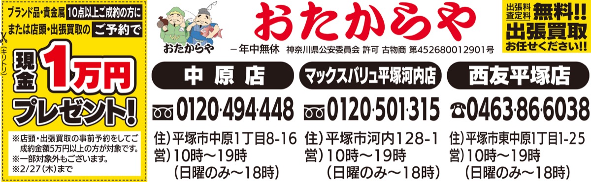 西友平塚店・中原店・マックスバリュ平塚河内店 おたからや