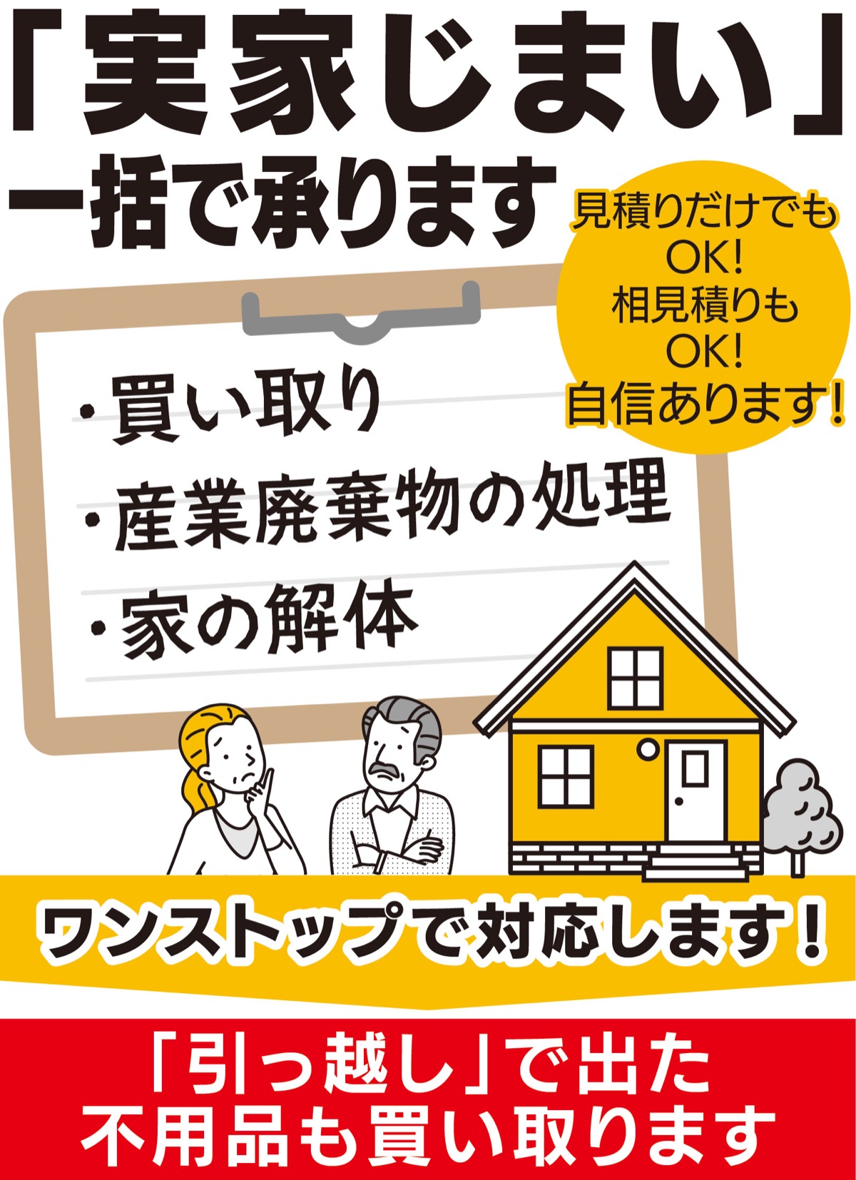 「おたからや西友平塚店」「おたからや中原店」「おたからやマックスバリュ平塚河内店」では、値が付くものの買い取りはもちろん、産業廃棄物の処分や家の解体に至るまで、全て一括で行う。「『実家じまい』というと億劫に感じる方が多いと思いますが、当店では窓口ひとつでワンストップで承ります。お気軽にご相談を」と呼びかける。また、これから迎える引っ越しシーズンに対し、「引っ越しの片付けで出た不用品は、捨てずにぜひ一度無料査定をご利用下さい」と同店。