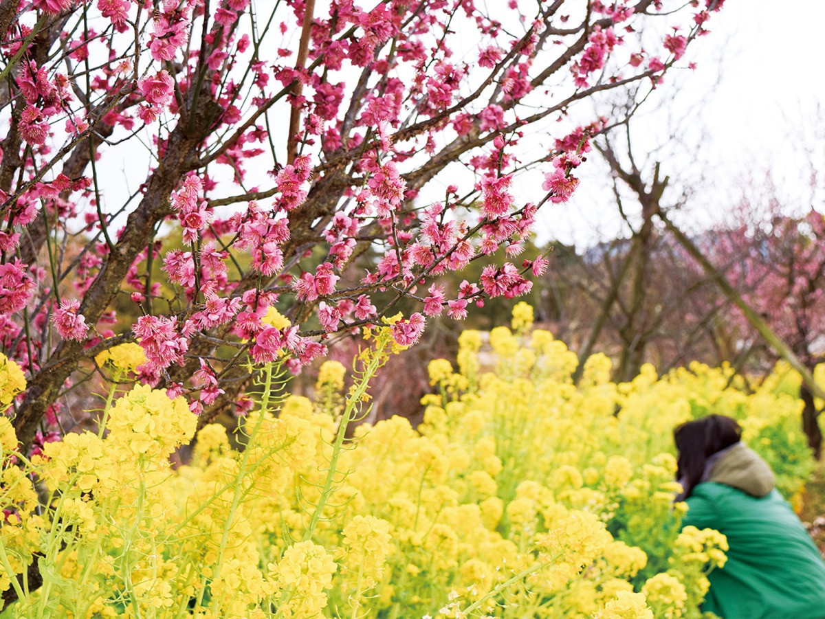 開園当初は果実をつける「実梅」のみの植栽だったが、2018年から、花を楽しむ「花梅」が加わり、現在では19品種、約30本の梅が菜の花との競演で園内を彩っている。