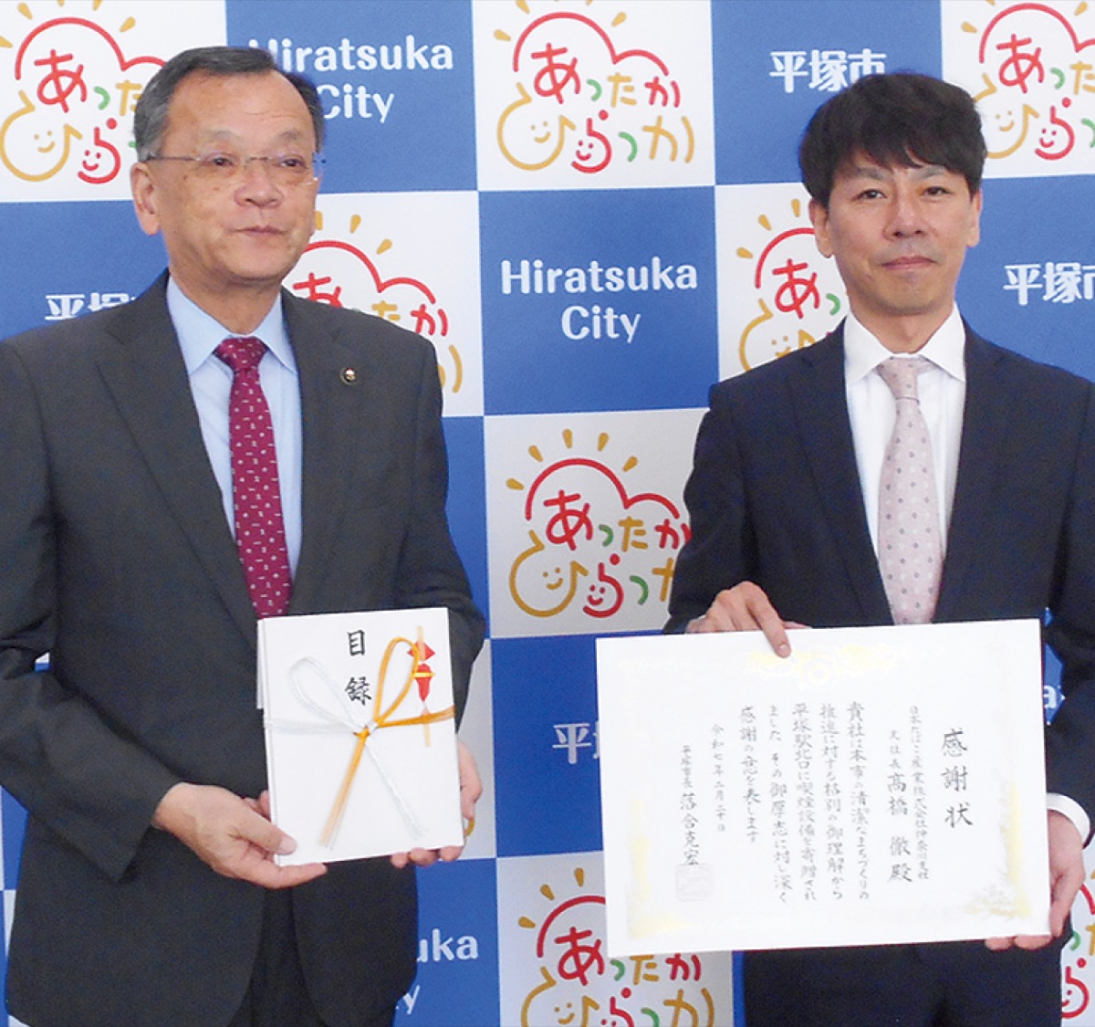 「平塚駅北口喫煙場所」の改修工事が終了し、2月12日から供用が始まった。20日には日本たばこ産業株式会社神奈川支社の野中憲一郎部長が落合克宏市長を訪れ、喫煙設備の贈呈式が行われた。