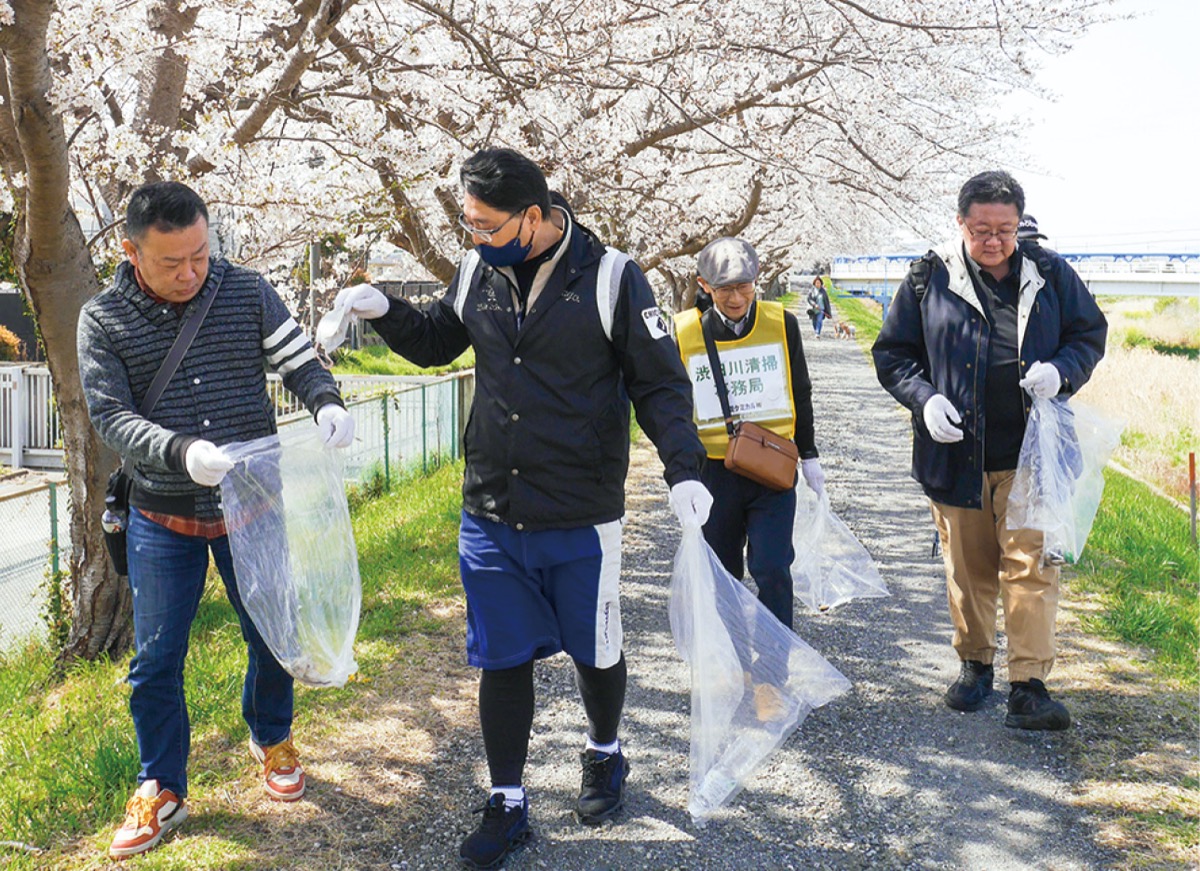 三菱ケミカル(株)関東事業所平塚地区(西真土)が4月5日、渋田川堤防の清掃ボランティアをした。環境保護や地域住民との交流を目的に毎年この時期に行われている活動で、今年で33回目を迎えた。
