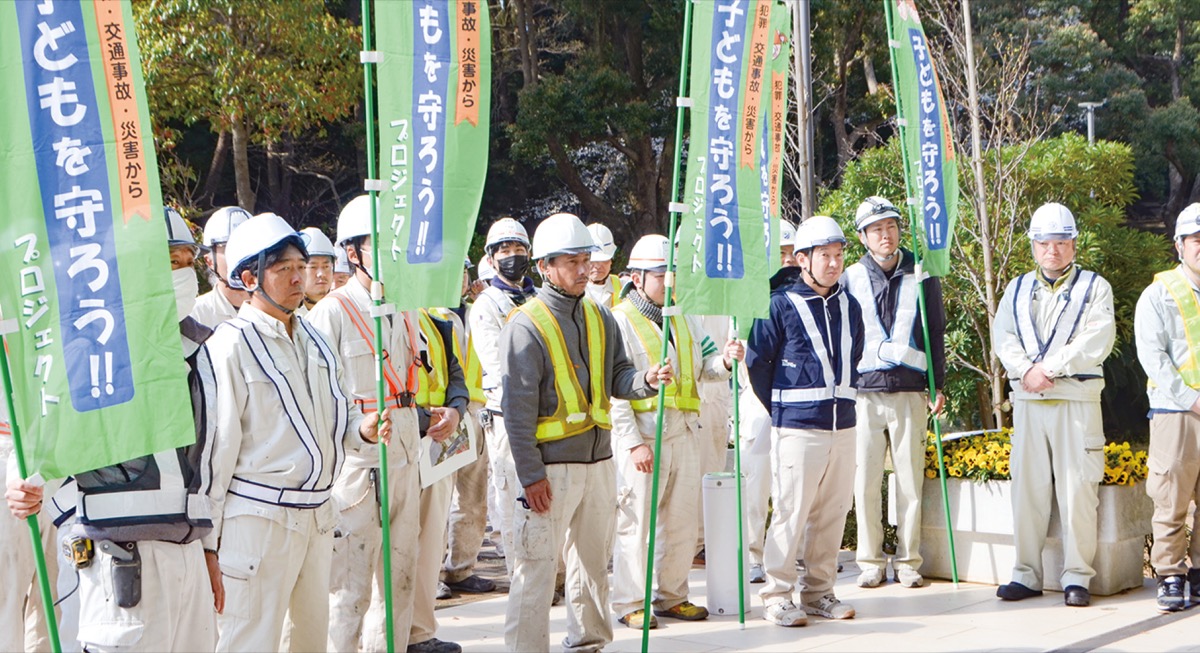 同事業は、子どもたちを危険な交通事故から守ることを目的に、同協会が毎年全国規模で展開している社会貢献活動「子どもを守ろうプロジェクト」の一環。平塚市内では初めて行われた。この日は同協会の86人が参加し、ボランティアで作業に励んだ。