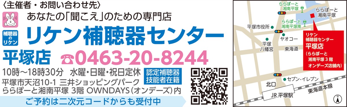 補聴器専門店「リケン補聴器センター 平塚店」による「聞こえと補聴器の相談会」が好評を博している。多くの人の要望に応えるため、同店は5月4日(日)・5日(月)・6日(火)のGW期間中に特別開催することになった。