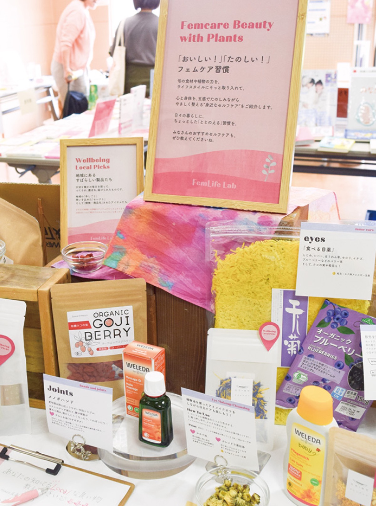 湘南大磯病院の婦人科医・久保唯奈医師などが講演したほか、女性の健康に関する書籍の展示、生理用品の紹介、女性の体や健康、特にデリケートゾーンのケア全般を指す「フェムケア」習慣の啓発などが行われた。