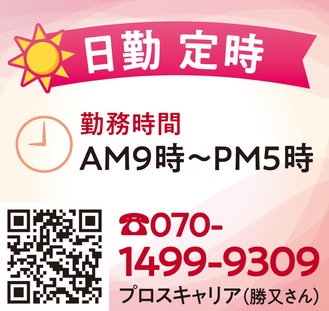 詳細は人材派遣プロスキャリアの担当者・勝又さんに電話か、二次元コードをチェック。