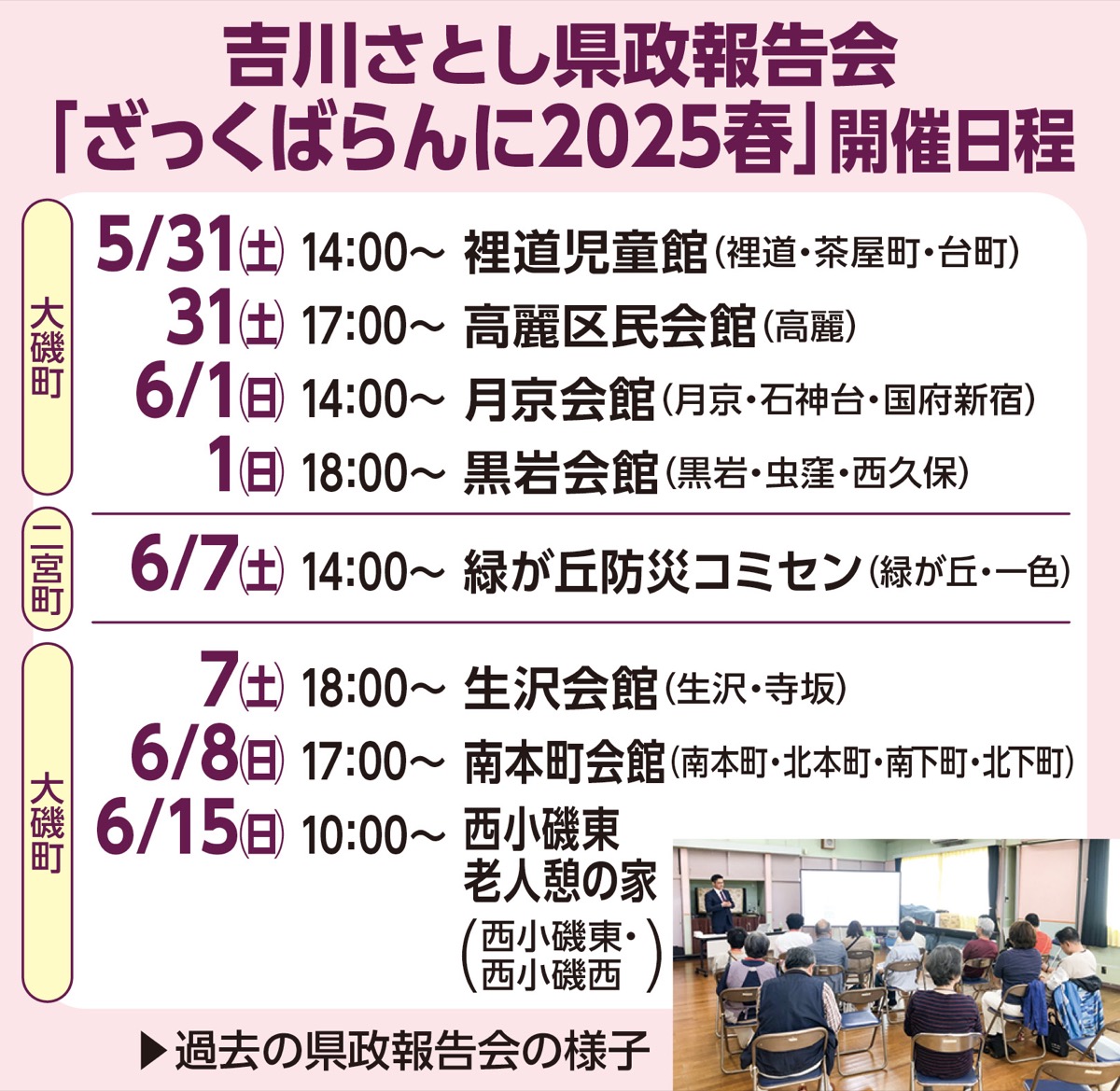 吉川さとし県政報告会「ざっくばらんに2025春」を開催中です。
