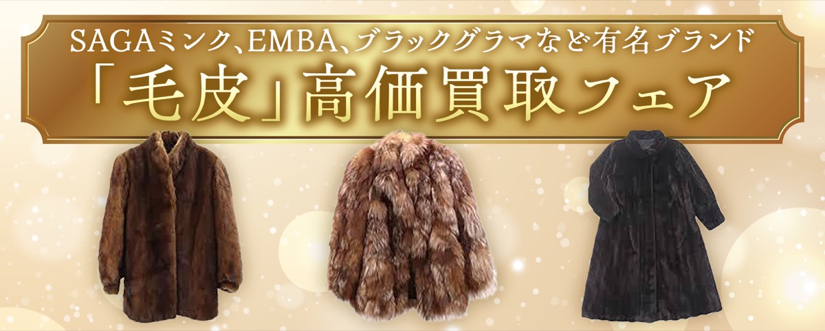 特にSAGAミンクやEMBA、ブラックグラマなど有名ブランドの毛皮は、高額査定になることも。その他、毛皮のコートやショール、帽子や小物も査定対象。「着なくなった毛皮が想像以上に高値で売れた」と喜びの声が寄せられている。「状態不問です。古くても、毛皮の種類がわからなくても大丈夫。プロの査定員がしっかりと評価します」と同店。