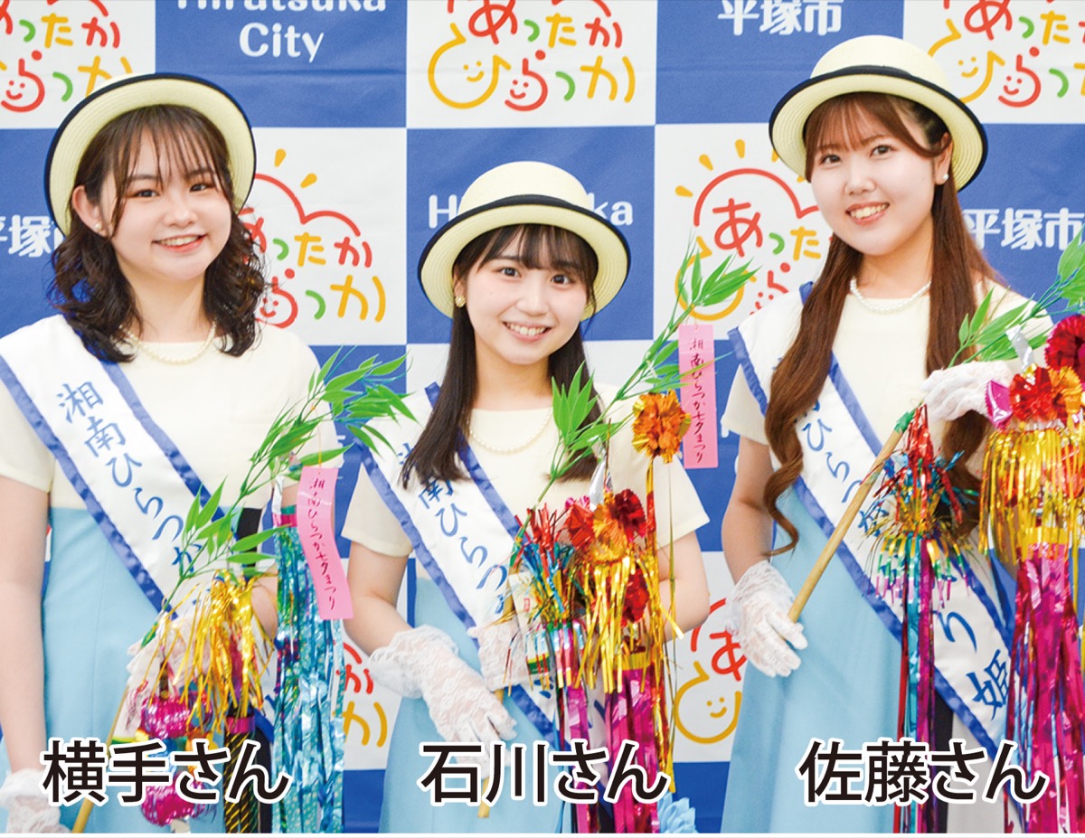 第73回湘南ひらつか織り姫には、いずれも市内在住で学生の横手春菜さん(24)、石川愛梨さん(21)、佐藤妃来(きら)さん(20)が選ばれた。