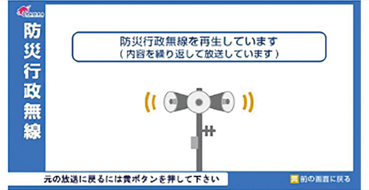 行政からの緊急情報を電子メールで配信する「easy pocket」などのサービスも展開していたが、高齢化が進む中でより多様な世代にわかりやすく使ってもらえるようにと、テレビに紐づいた防災無線の放送をスタートさせた。柏手社長は、「外で何か鳴っているな、と思ったら、データ放送を見てみてほしい。1分遅れにはなりますが、繰り返しクリアな音声で情報を伝えます」と話していた。