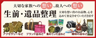 生前整理は、身辺整理ができるだけではなく、相続トラブルを事前に防いだり、気持ちも整理できる利点がある。同店では「遺すもの、手放すもの、譲るものの整理をお手伝いします。ご相談だけでも大歓迎。捨てる前にまず無料査定をご利用ください。想い出の品に、思わぬ価値があるかもしれません」と呼び掛けている。