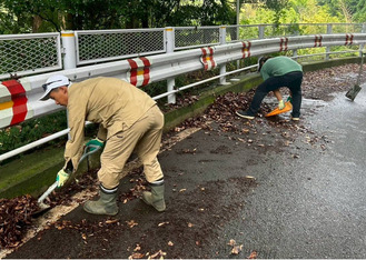 中井町商工振興会青年部(及川佑介部長)は7月6日、中井町藤沢旧道で清掃活動を行った。