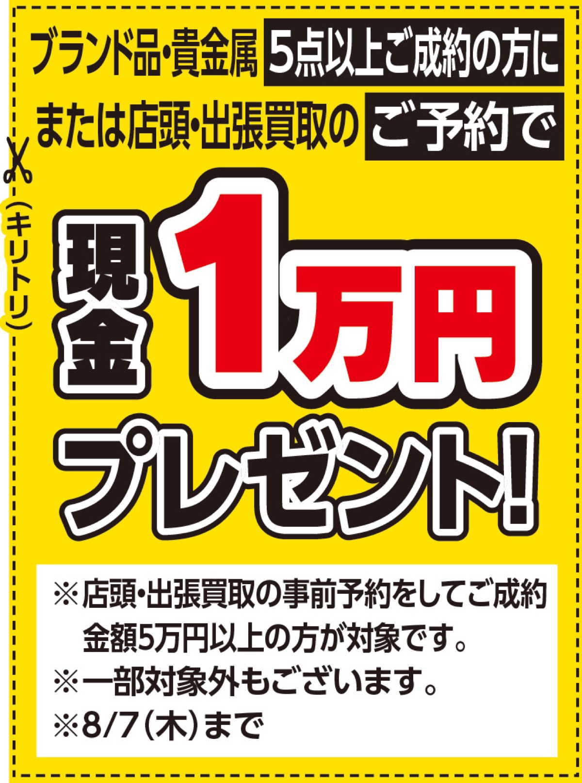店頭・出張買取の予約で1万円