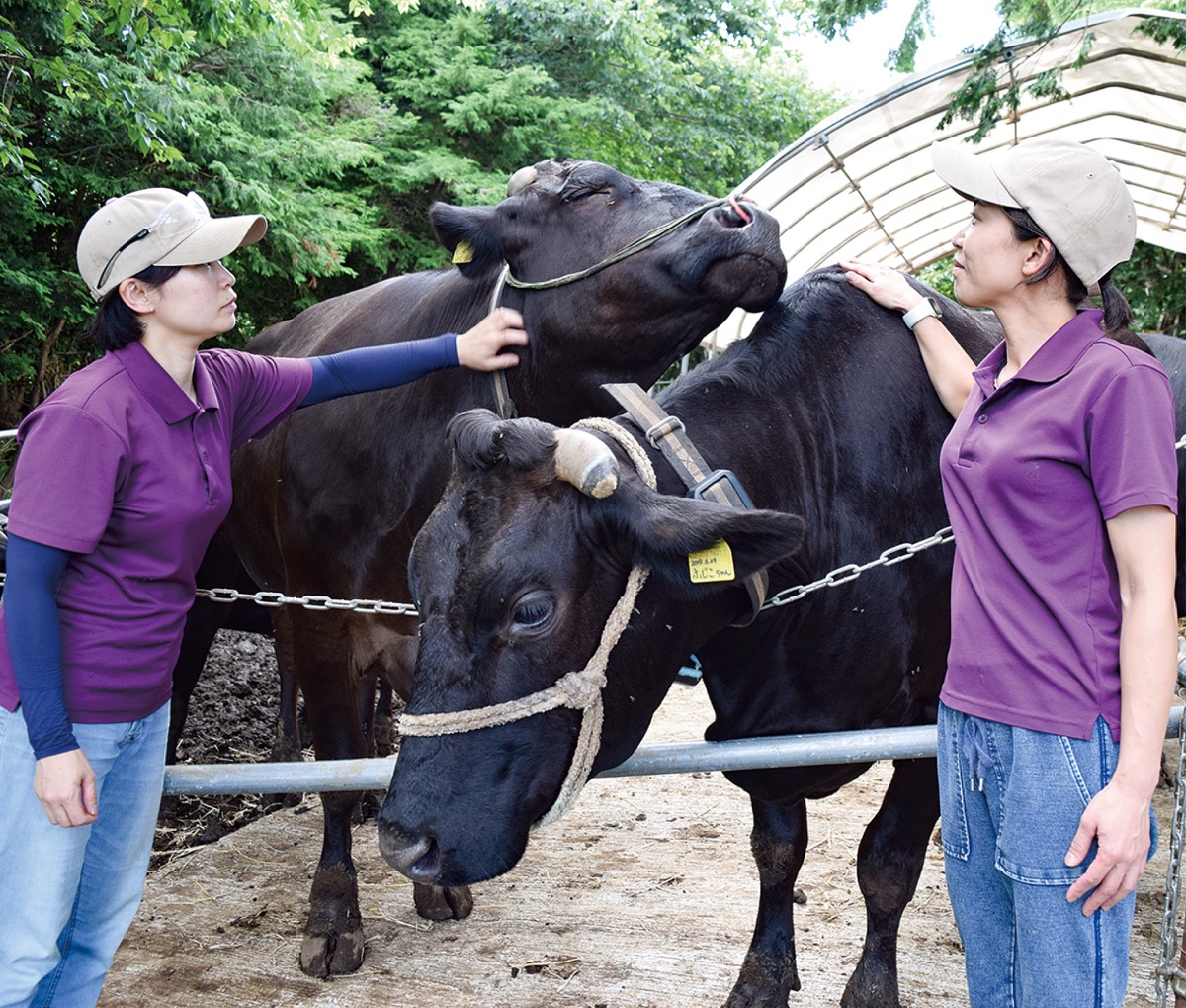 同牧場の特徴は「子育て経験者の視点」を生かした飼育だ。牛を捕まえたり、移動させたりするような力仕事は難しいため、牛との信頼関係を築き、なつかせることで解決しているという。「我が子のように接すれば、この子は顔色が悪いねという変化にも気づける。病気も早期に対処でき、死亡事故も少ない」と渡辺さん。
