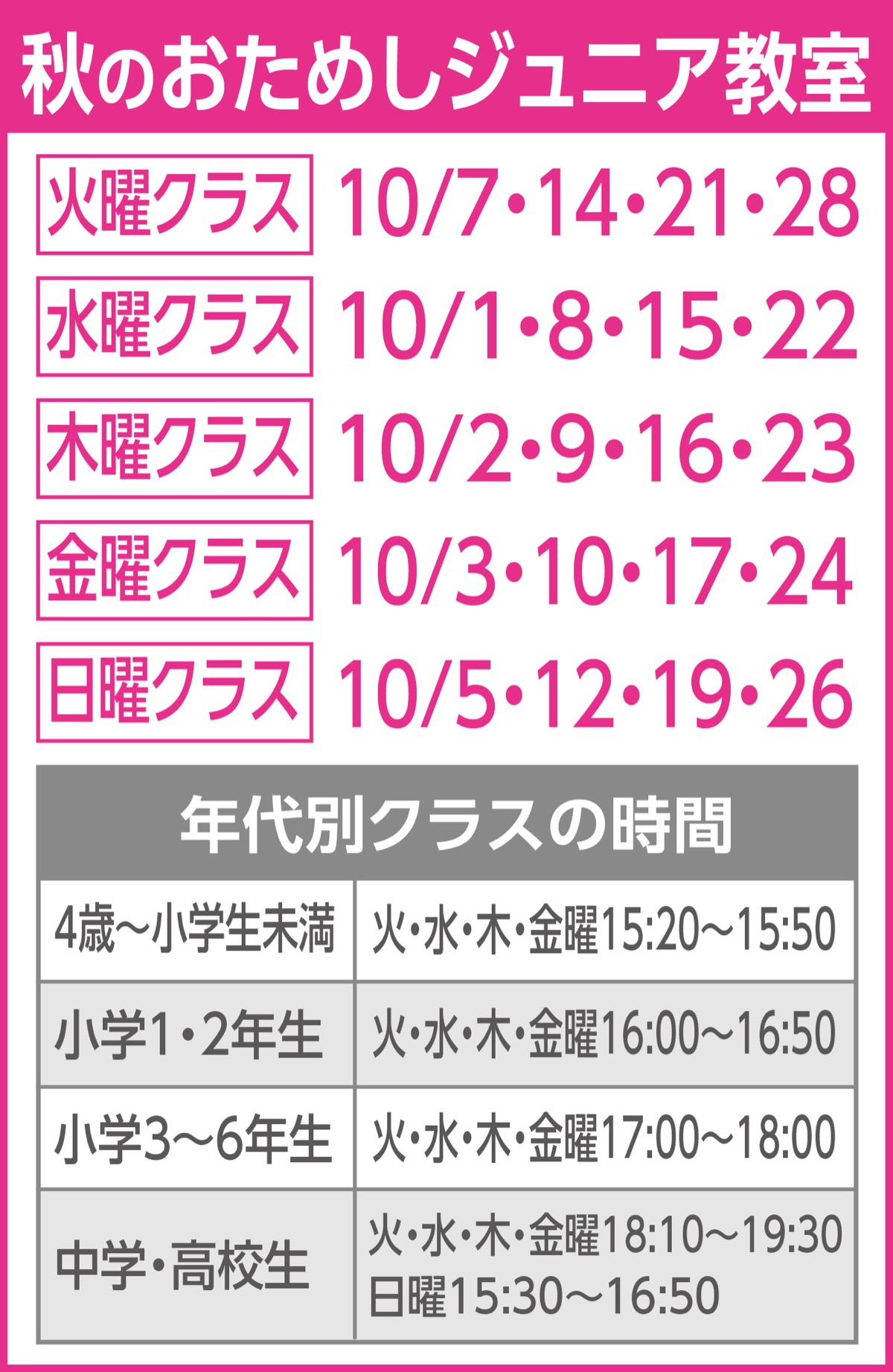 また、初心者応援企画の「エンジョイクラス」なら、月謝(4回)9900円が2200OFFの7700円/税込。