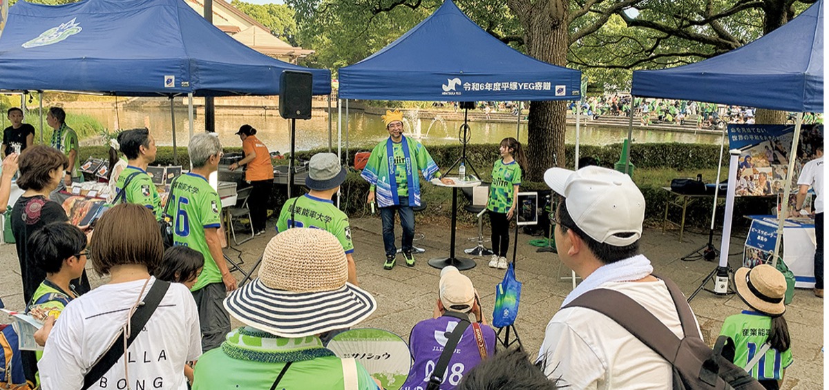 三村さんと池田さんの明るい雰囲気と掛け合いが人気のコーナーで、2人の様子は大型ビジョンに映し出される。三村さんは、「初めて来場した人にも楽しんでもらいたい」と、クラブのグッズやスタグル(スタジアムグルメ)の紹介などを行い、サッカーに興味がない人にも思い出を作ってもらう工夫を凝らす。