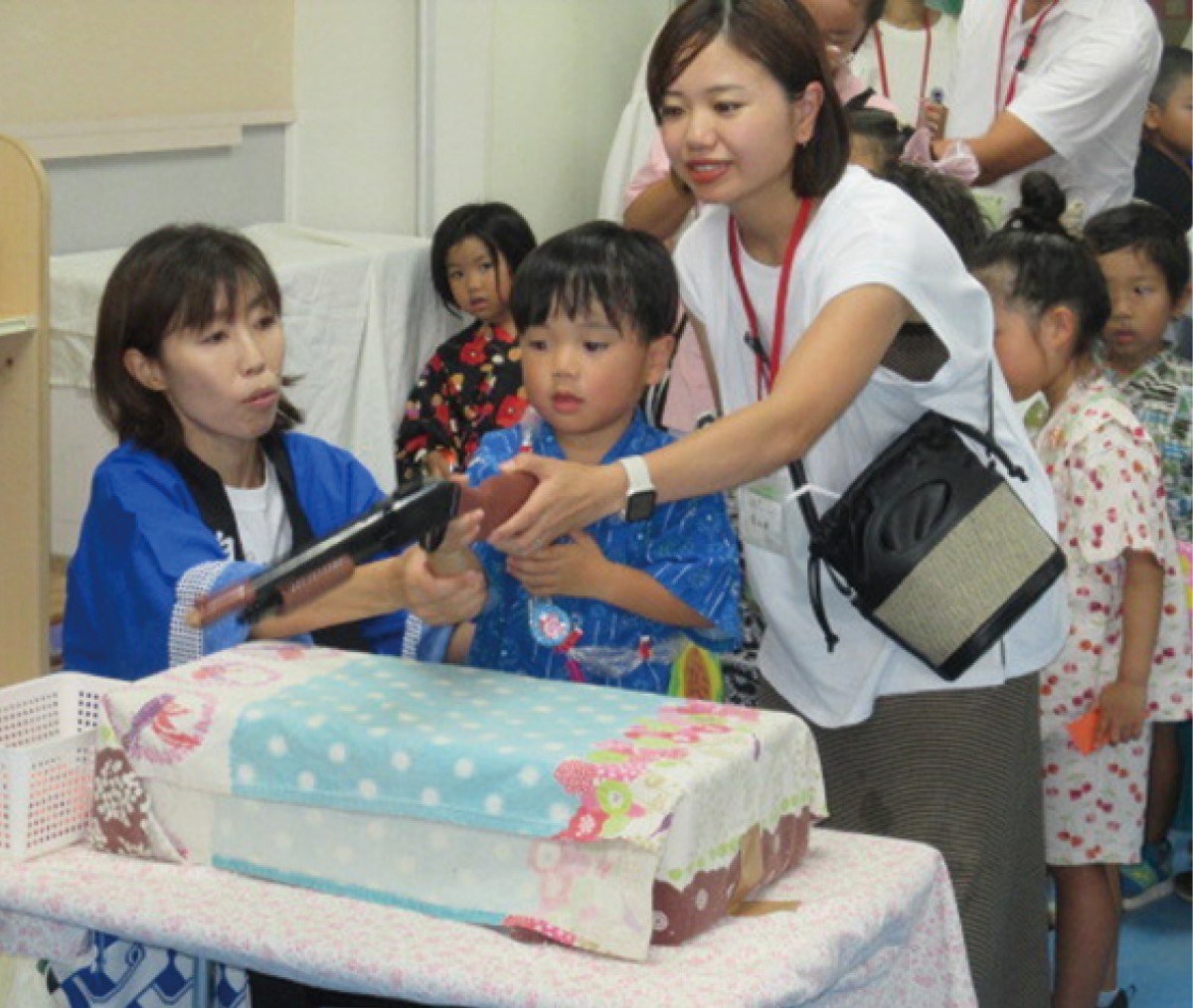 平塚市河内の白鳥幼稚園で8月、恒例の夏まつりが開催され、園児たちが思い出を作った。