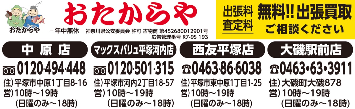 大磯駅前店・西友平塚店・中原店・マックスバリュ平塚河内店 おたからや