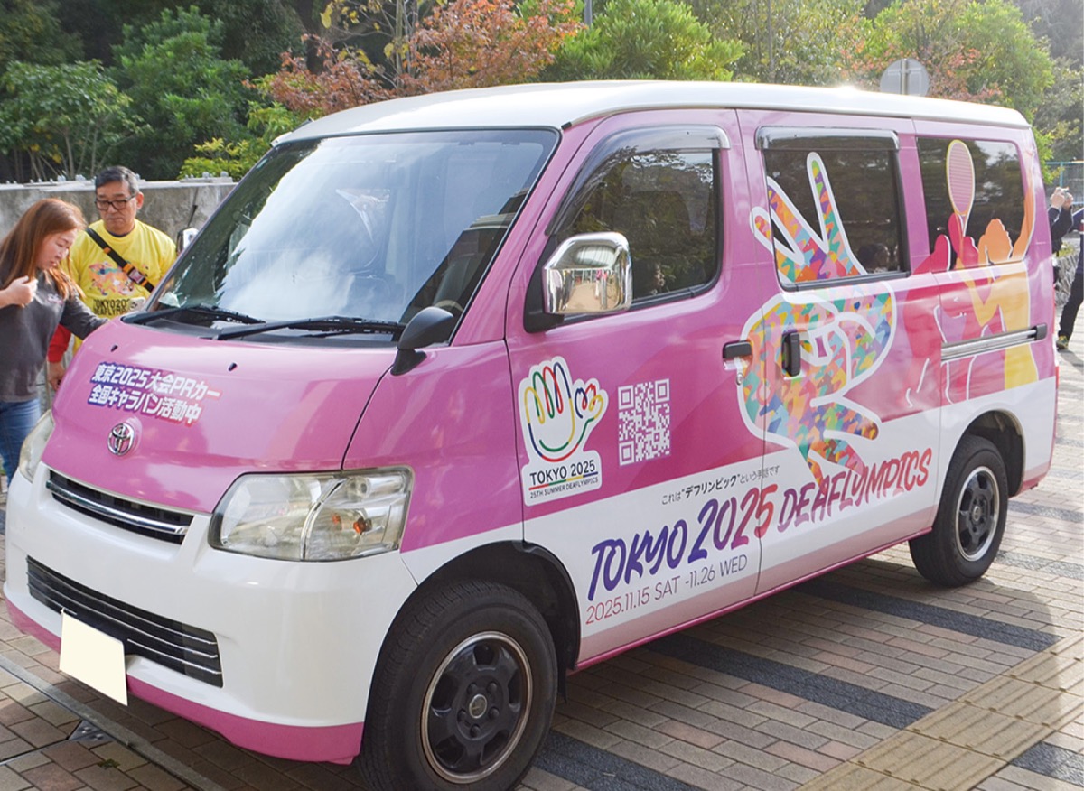 11月15日(土)〜26日(水)に日本で初めて開催される「東京2025デフリンピック」の認知度向上と気運の醸成を目的に全国を巡回しているキャラバンカーが、10月29日に平塚市役所を訪問。大会成功へ向けたセレモニーやパネル展示が行われた。セレモニーには平塚市在住でデフリンピック水泳競技日本代表の茨隆太郎選手が参加し、応援に駆けつけた参加者からエールが送られた。
