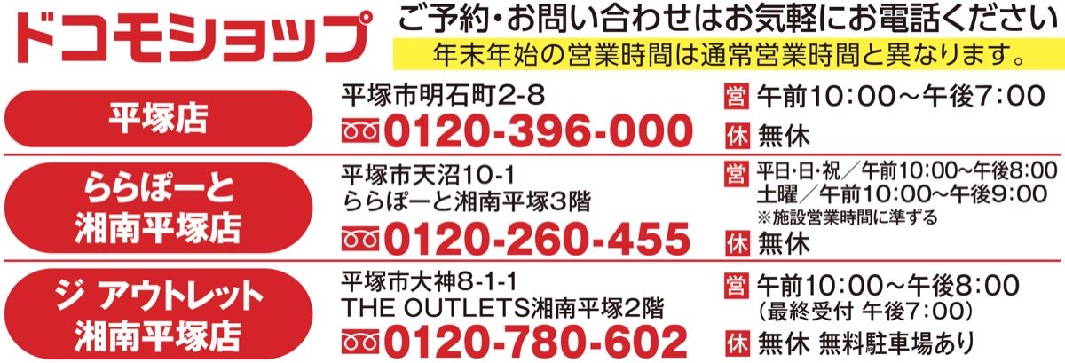 ドコモショップ 平塚店/ららぽーと湘南平塚店/ジ アウトレット湘南平塚店