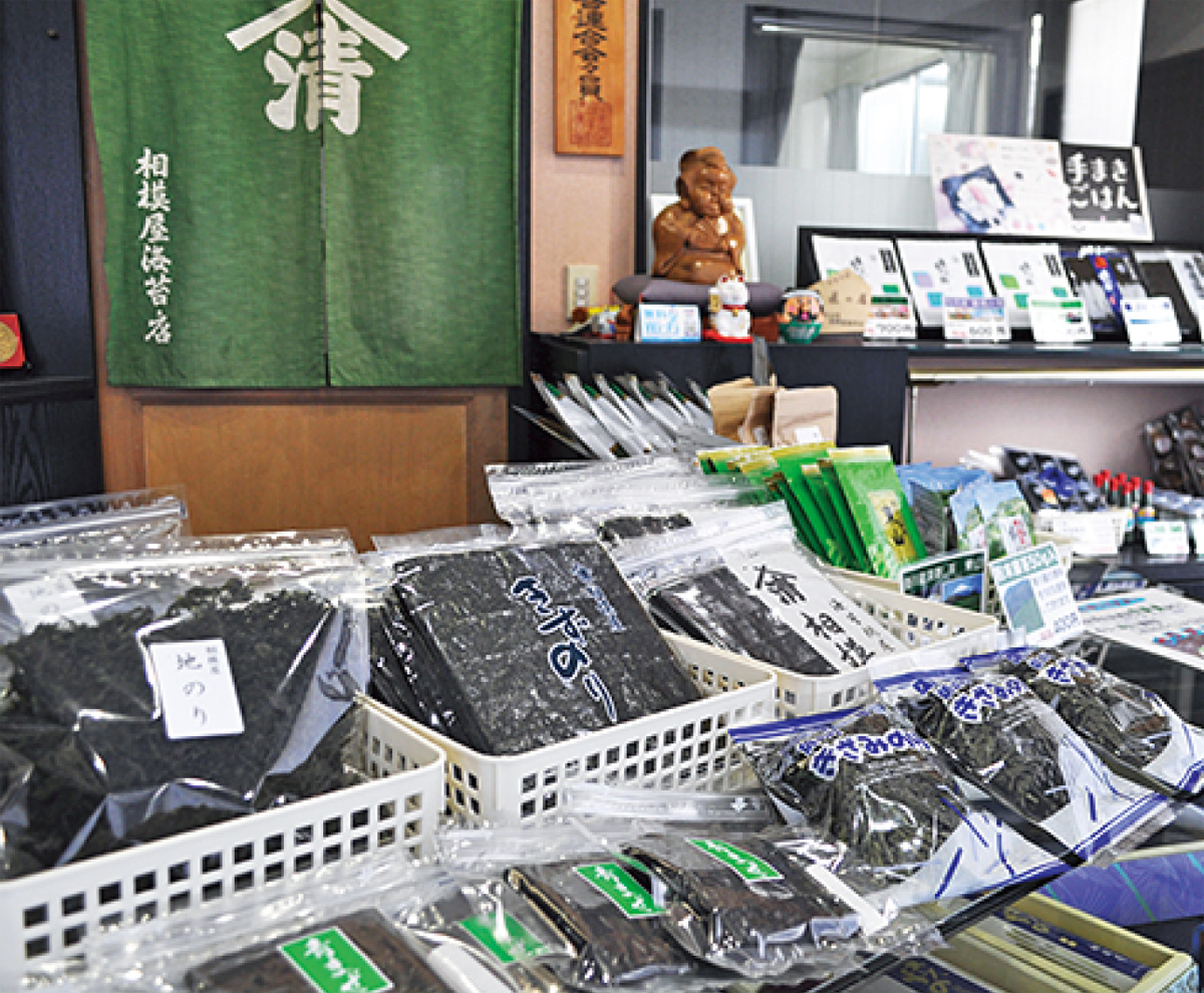 創業60余年の相模屋海苔店は、名産地から買い付けた高級海苔を一枚一枚丁寧に焼き上げ、素材本来の風味を最大限に引き立てて提供する。