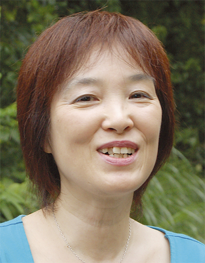 ○…藤沢市出身。東京造形大学絵画科で木版画を学ぶ。大学の同級生と結婚後、大磯へ。一時期は育児に専念し、下の子が小学生になって再び木版画に力を注ぐ。飛騨高山現代木版画ビエンナーレ展、ブルガリアの国際小版画展、CWAJ現代版画展などで入選。制作過程では試し刷りの後で彫り直すこともあり「悪戦苦闘している時に自分らしいものが表れる」。初めての本刷りはいつもワクワク。和紙をめくり、予想を超える作品に仕上がることも木版画の醍醐味だそう。「創作によって元気でいられるし、それを支えてくれる周りの人たちに感謝」と、充実感と歓びを率直に述べる。人を和ませるほんわかとした人柄が作品に通じている。春陽会会友。