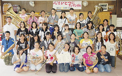 大磯町立国府中学校(川越初榮校長・生徒数364人)の吹奏楽部が、8月8日に横須賀市のよこすか芸術劇場で行われた第60回神奈川県吹奏楽コンクール中学生B部門1日目(主催/県吹奏楽連盟・朝日新聞社)で金賞を受賞した。この日に出場した30校のなかで最優秀の演奏であることが高く評価され、朝日新聞社賞も受けるダブル受賞となった。来月17日、同劇場で開催される東関東大会へ初めて出場する。