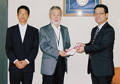 行った。湘南・小田原ブロック営業本部の白井祐次本部長と石井支店長が6日、町役場に中崎久雄町長を訪ね、「再建に役立てて下さい」と目録を手渡した。同支店には中崎町長から感謝状が贈られた。