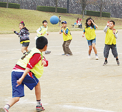 町立井ノ口小学校と中村小学校の児童約140人と協力者の大人約70人が参加。数字が書かれた的を狙って投球するストラックアウトやウォークラリー、陣取りじゃんけんなどを楽しんだ。ドッジボールでは、ボールを当てられた仲間に「敵(かたき)をとってやるぞ」といって、素早いパス回しで活躍する男子児童もいた。