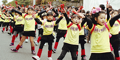 パレード終了後は全ての参加団体が会場中央に集結し、寒さを吹き飛ばすほどの勢いの「総踊り」で熱く盛り上がった。沿道では二宮町の特産品の販売コーナーも設けられ、見頃を迎えた吾妻山の菜の花などの観光PRも行われた。