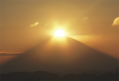 富士山頂に太陽が重なる「ダイヤモンド富士」現象。東か西の方角に富士山が見える場所では春と秋の年2回、これを見るチャンスがめぐってくる。国土交通省関東地方整備局が選定した「関東の富士見百景」のうち、地元から選出されている湘南大磯の県立大磯城山公園と照ヶ崎海岸、二宮町の吾妻山、中井中央公園とその周辺からも条件が揃えば日没時に観測できるかもしれない。