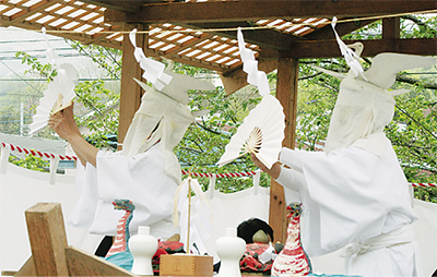 夕方、神輿が中村川の脇にある御旅所に着き、神幸祭が執り行われた。神職が神前に膳を捧げ、神輿の正面に設置した船形の舞台では鷺の舞を奉納。白装束に身を包んだ2名の舞手が鷺と龍、獅子の張子を被り、ゆったりとした笛と太鼓にのせて古式ゆかしい舞を披露。中井町の無形民俗文化財である鷺の舞は全国でも珍しく、東日本では同町と大磯町の六所神社、福島県の熊野神社の3カ所に残っているという。 厳かな神事を氏子や見物人が見守るなかで「ハプニング」もあった。鷺の舞の奉納が終わった直後、御旅所の上空を1羽のシラサギが飛び去った。「うわー」と歓声が上がり、「縁起がいい」と話す人もいた。