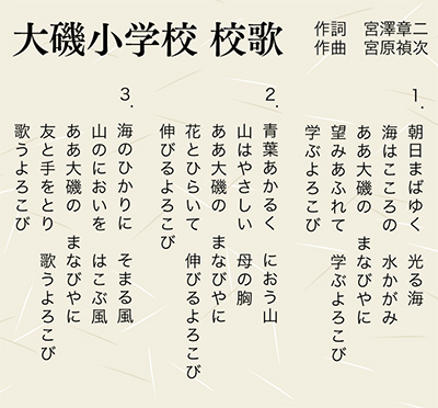 1873年開校。今年で139周年を迎えるが、校歌誕生からは59年しか経過していない。創立80周年の記念事業として、1953年に制定。作曲した宮原氏は、釣りの最中に曲のイメージが浮かんだという。