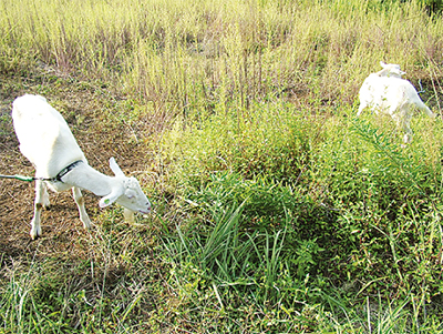 県西地域県政総合センターと域内の市町村で構成する「足柄やぎ利用振興協議会」では、耕作放棄地などの再生に向け、2年前から雑草の草刈りに最適なヤギを貸し出している。